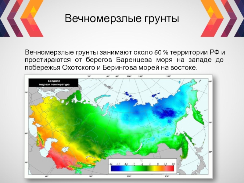 Вечномерзлые грунты занимают около 60 % территории РФ