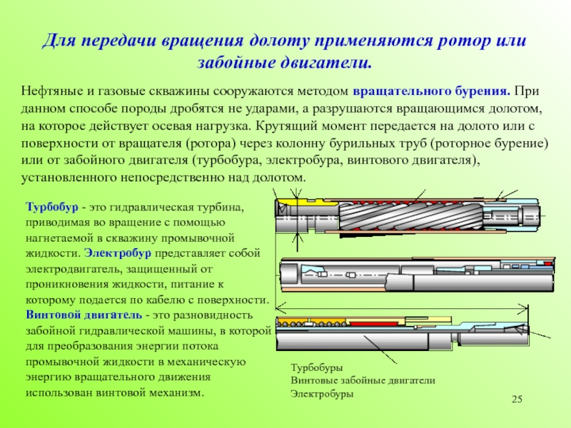 Для передачи вращения долоту применяются ротор или забойные двигатели.