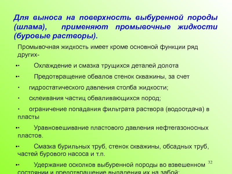 Промывочная жидкость имеет кроме основной функции ряд других-