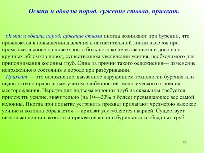 Осыпи и обвалы пород, сужение ствола, прихват.