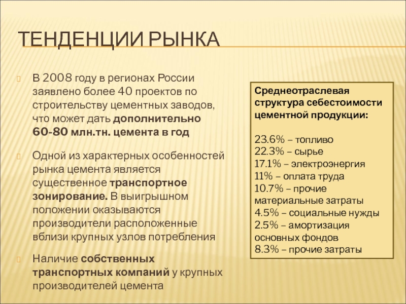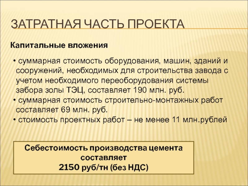 Себестоимость производства цемента составляет