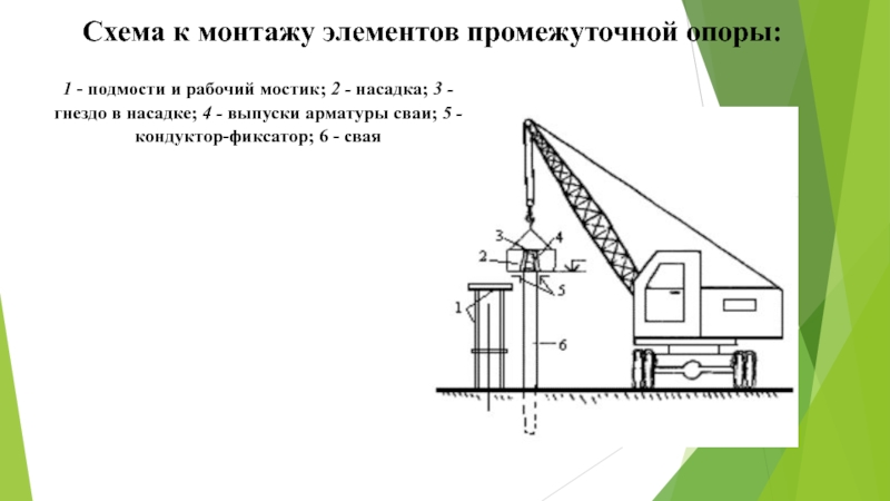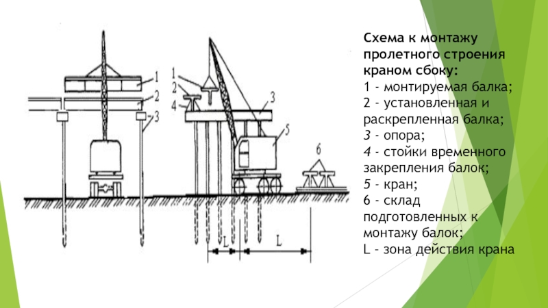 Слайд 41Схема к монтажу пролетного строения краном сбоку: