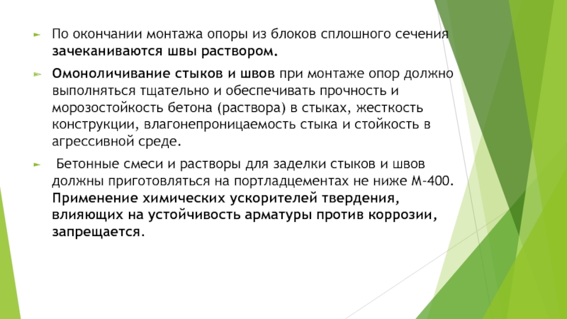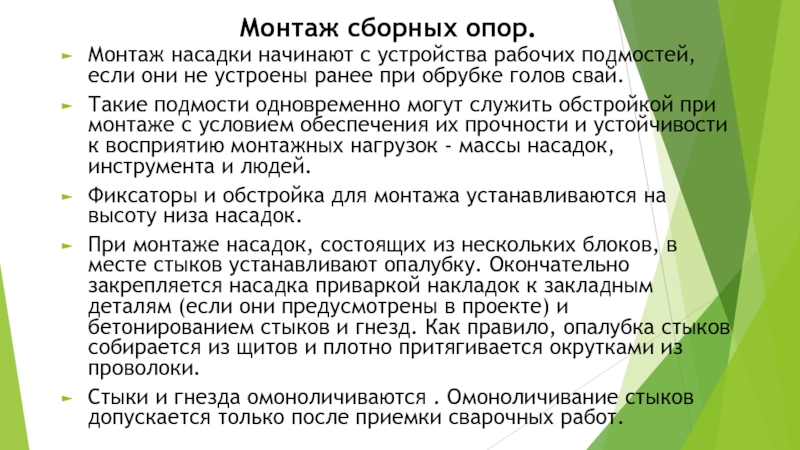 окончания монтажа опор, омоноличивания стыков и набора бетоном проектной прочности.
