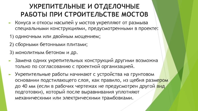 Слайд 54УКРЕПИТЕЛЬНЫЕ И ОТДЕЛОЧНЫЕ РАБОТЫ ПРИ СТРОИТЕЛЬСТВЕ МОСТОВ