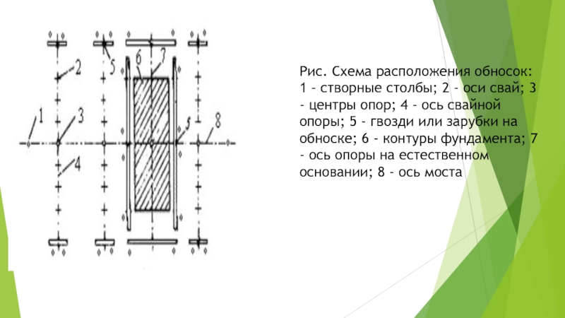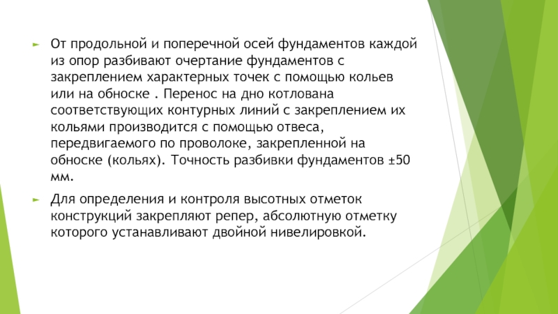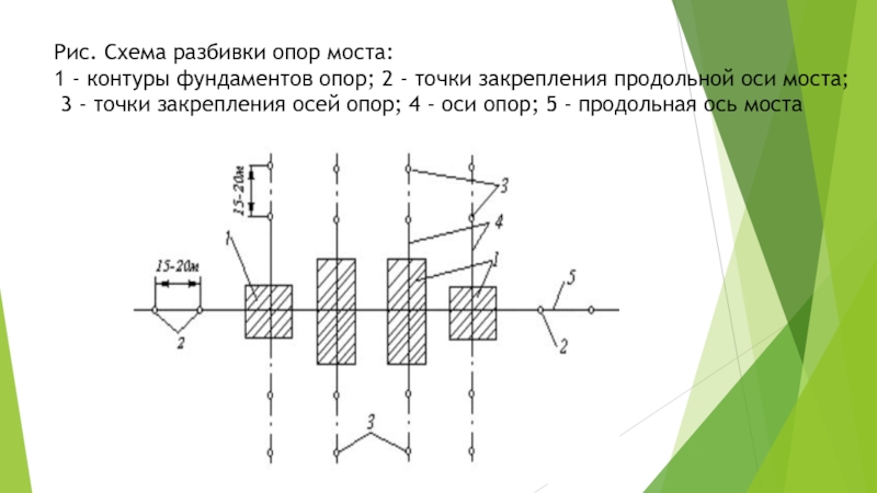 Слайд 11От продольной и поперечной осей фундаментов каждой из опор разбивают очертание