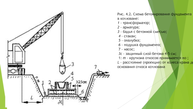 4. Котлованы необходимо разрабатывать непосредственно перед устройством фундамента с таким расчетом, чтобы по мере готовности во избежание обрушения стенок и заполнения котлована дождевыми водами он был освидетельствован и начато устройство фундамента.