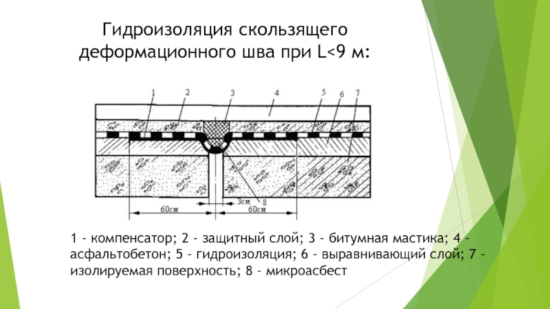 Слайд 48Гидроизоляция скользящего деформационного шва при L