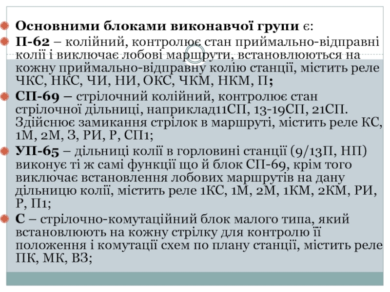 Структура блочної маршрутно-релейної централізації і типи блоків. (Заняття 3) презентация