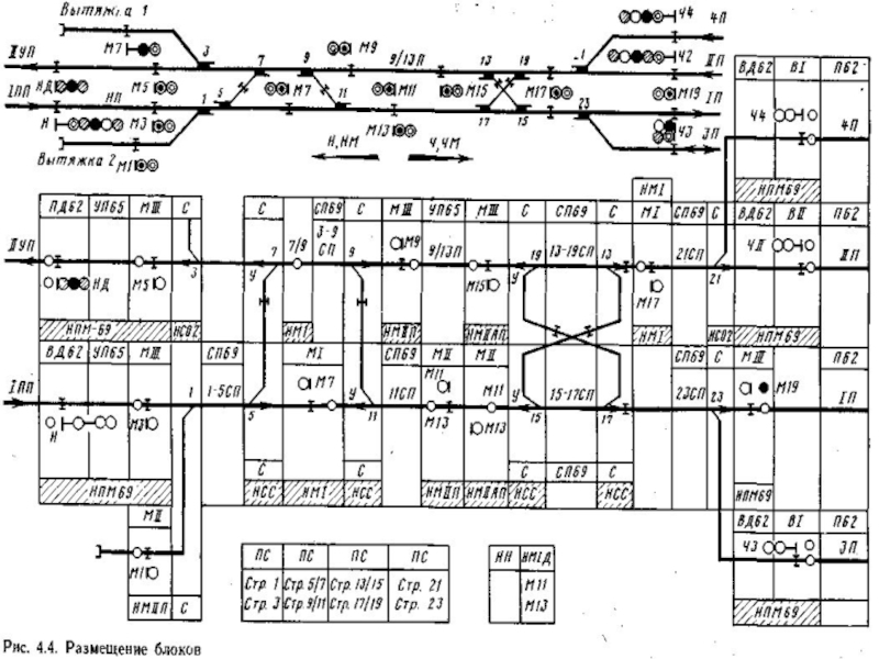 з ділянки колії (М3), з приймально–відправної колії (М19) (у даного світлофора визначають тільки початок маршруту, кінець – в блоці УП, встановленим поруч з даним блоком), містить реле КС, Н, С, РИ, ИП, О;