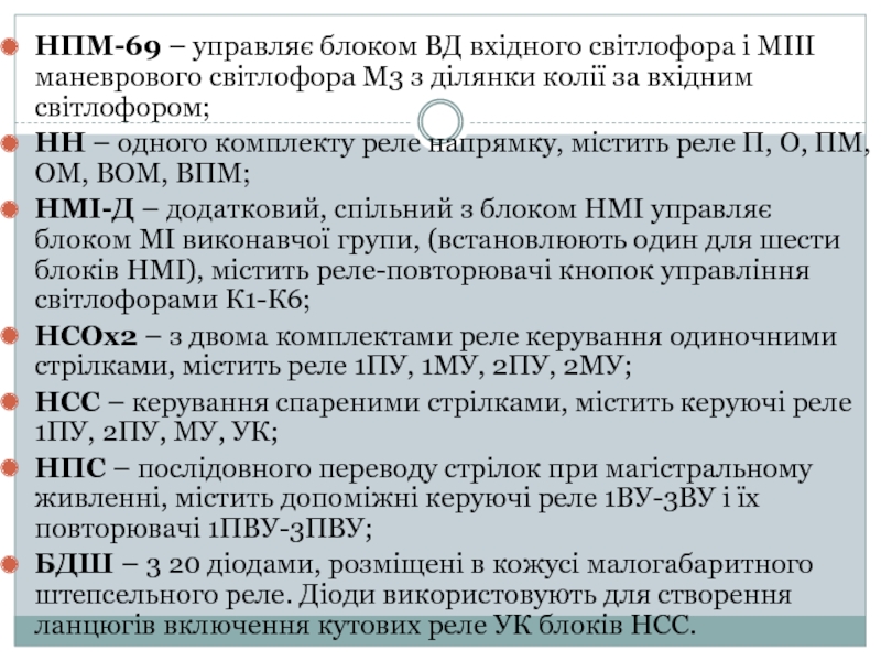 Слайд 10НПМ-69 – управляє блоком ВД вхідного світлофора і МІІІ маневрового світлофора