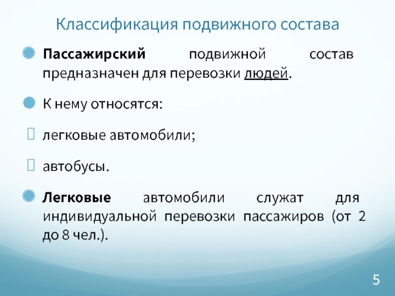 Слайд 5Классификация подвижного состава