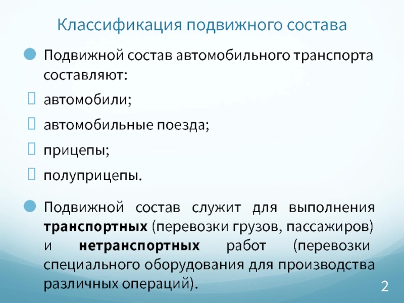 Слайд 2Классификация подвижного состава