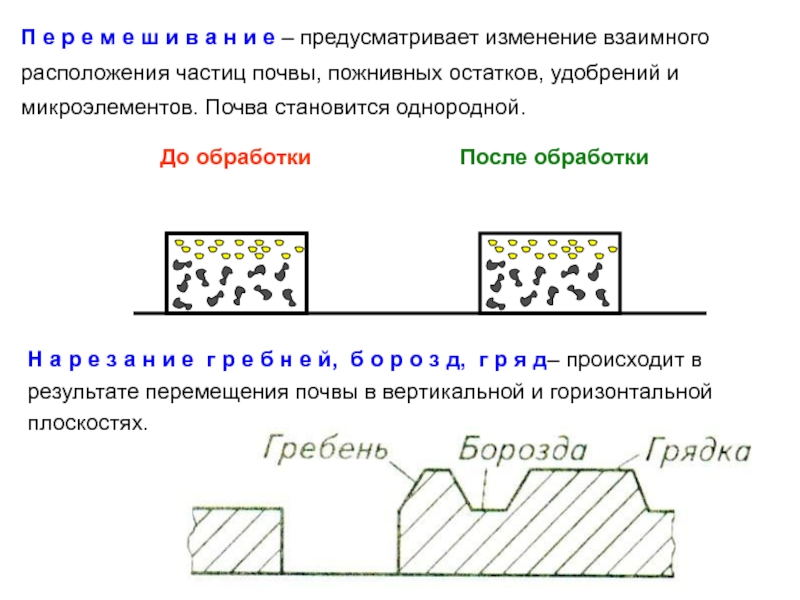 Н а р е з а н и е г р е б н е й, б о р о з д, г р я д– происходит в результате перемещения почвы в вертикальной и горизонтальной плоскостях.