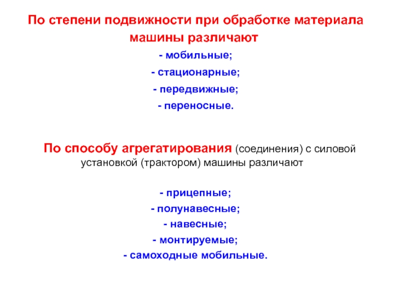 По способу агрегатирования (соединения) с силовой установкой (трактором) машины различают