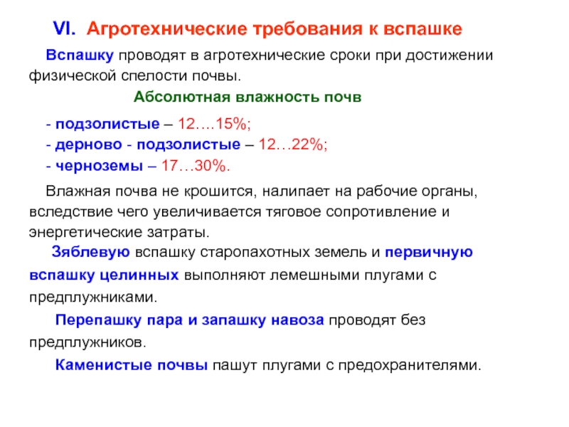 Задернелые почвы пашут с оборотом, но без рыхления.