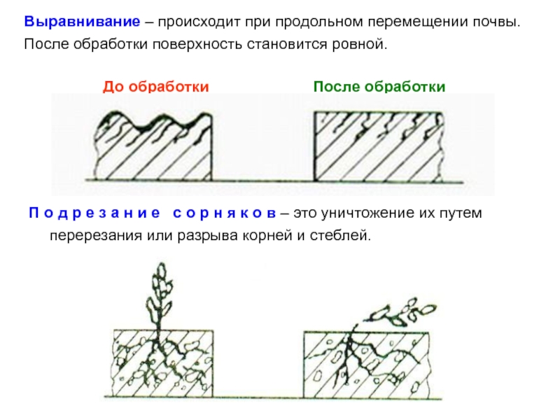 Выравнивание – происходит при продольном перемещении почвы. После обработки поверхность становится ровной.