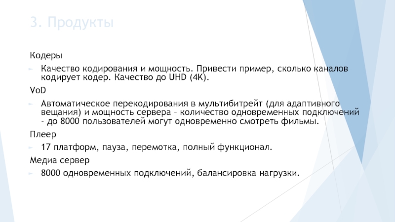 Автоматическое перекодирования в мультибитрейт (для адаптивного вещания) и мощность сервера – количество одновременных подключений - до 8000 пользователей могут одновременно смотреть фильмы.