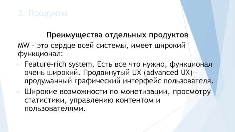 Feature-rich system. Есть все что нужно, функционал очень широкий. Продвинутый UX (advanced UX) – продуманный графический интерфейс пользователя.