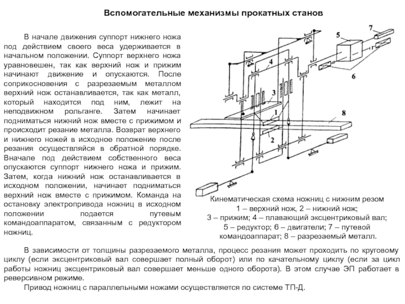 Тянущая клеть в радиальных установках заменена правильно-тянущей машиной 7, благодаря чему слиток можно разрезать на заготовки любой длины. Такая схема лучше согласуется с прокаткой (на ее основе разработаны литейно-прокатные агрегаты). Кроме того, снижаются капитальные затраты на сооружение установок.