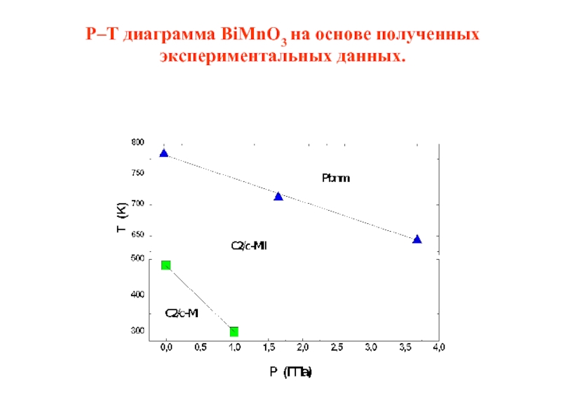 Слайд 27P–Т диаграмма BiMnO3 на основе полученных экспериментальных данных.