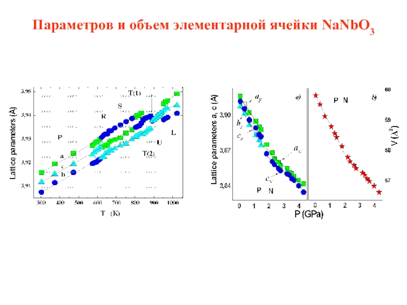 Слайд 20Параметров и объем элементарной ячейки NaNbO3