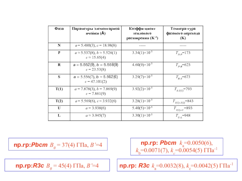 Слайд 21пр.гр: Pbcm ka=0.0050(6), kb=0.0071(7), kc=0.0054(5) ГПа-1