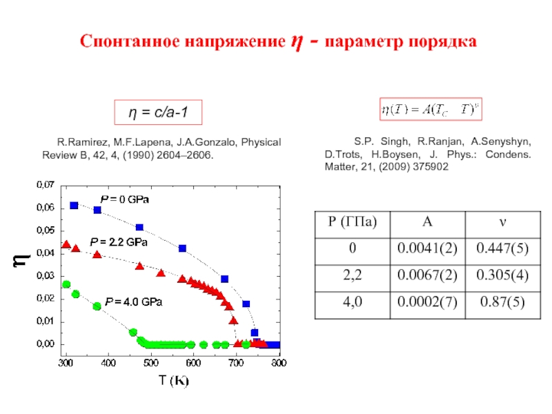 Слайд 13Cпонтанное напряжение η - параметр порядка