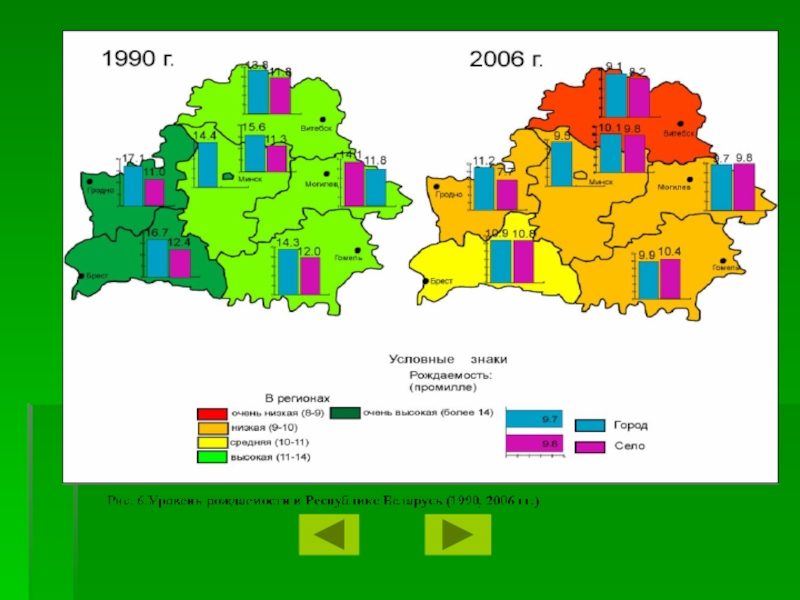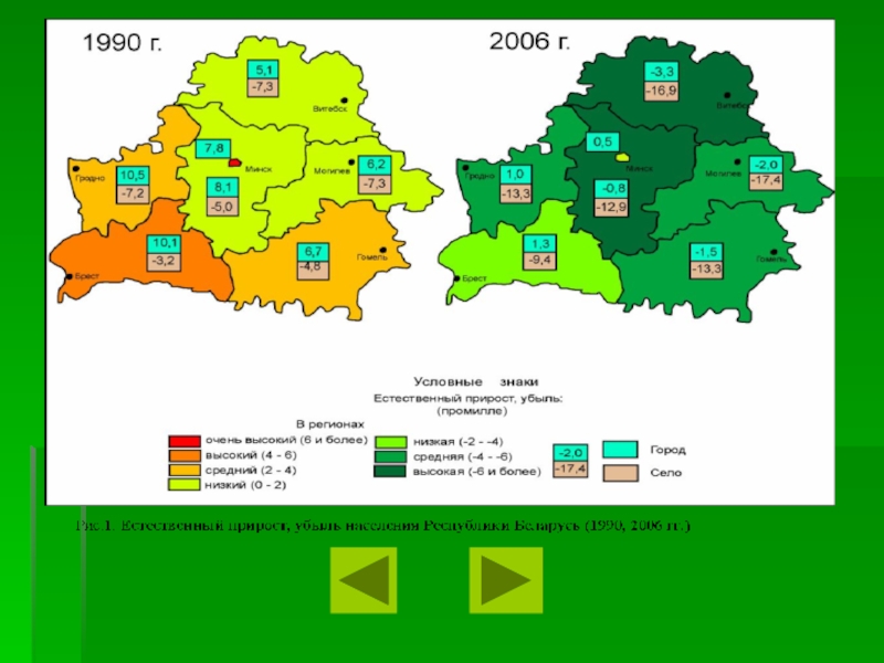 Первый (1990-1994 гг.) подпериод характеризуется переходом режима воспроизводства населения от простого к суженному. Население РБ + 25 тыс. чел.,городское население+196тыс.чел. сельское -141 тыс. чел. Характерна сильная дифференциация в региональном разрезе.