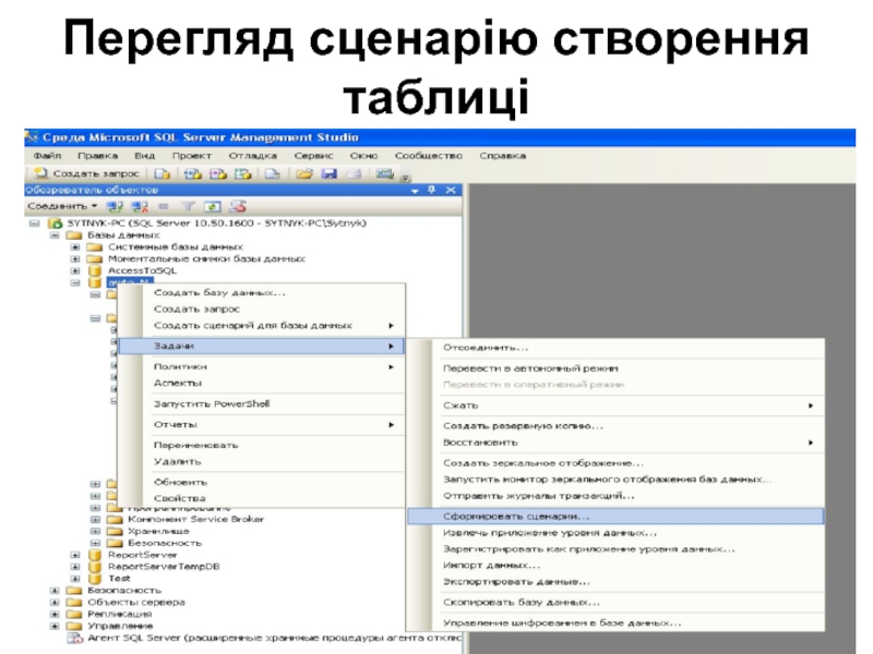 Слайд 18Необхідно натиснути ліву клавішу мишки на імені бази даних і у