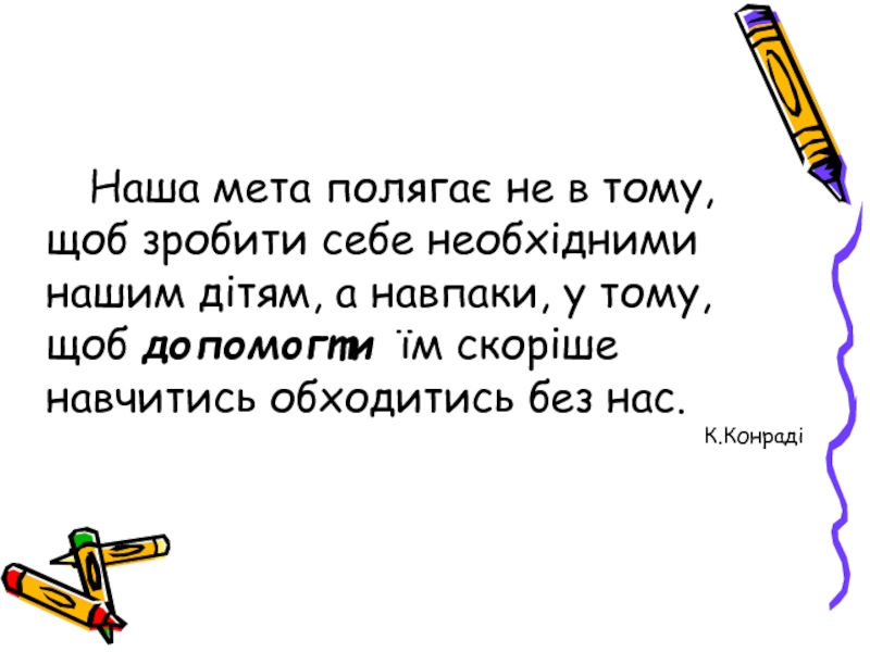 дітям, а навпаки, у тому, щоб допомогти їм скоріше навчитись обходитись без нас.