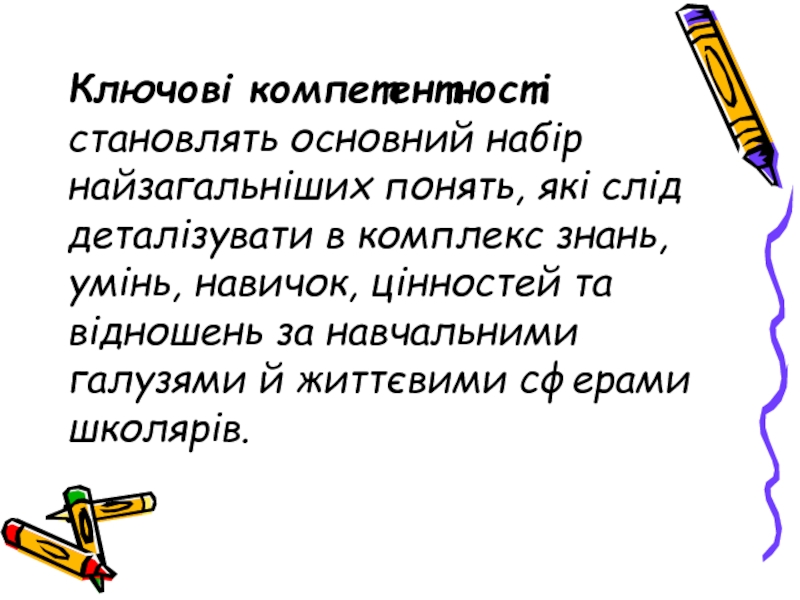 Слайд 8Ключові компетентності становлять основний набір найзагальніших понять, які слід деталізувати в