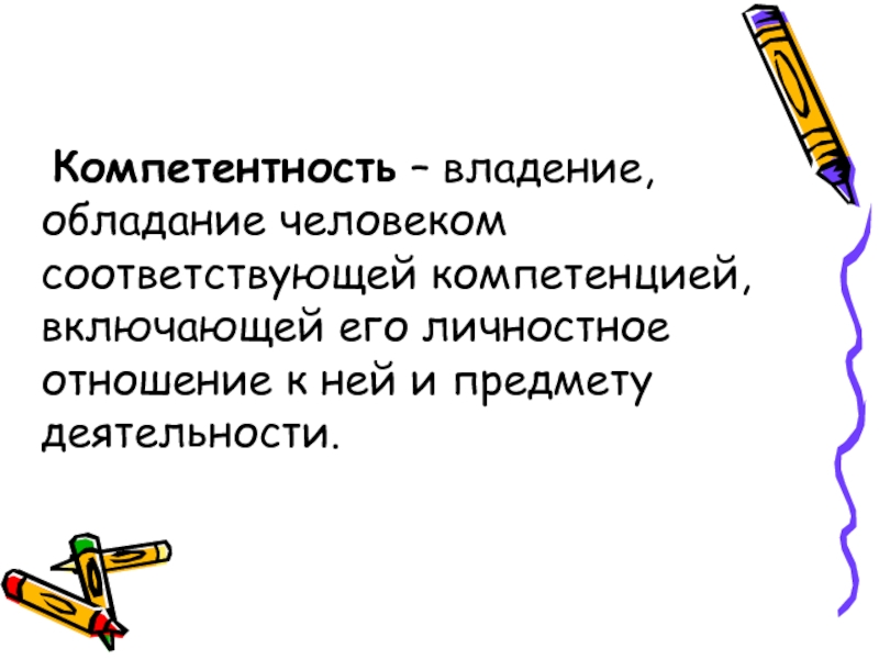 Слайд 3 Компетентность – владение, обладание человеком соответствующей компетенцией, включающей его личностное