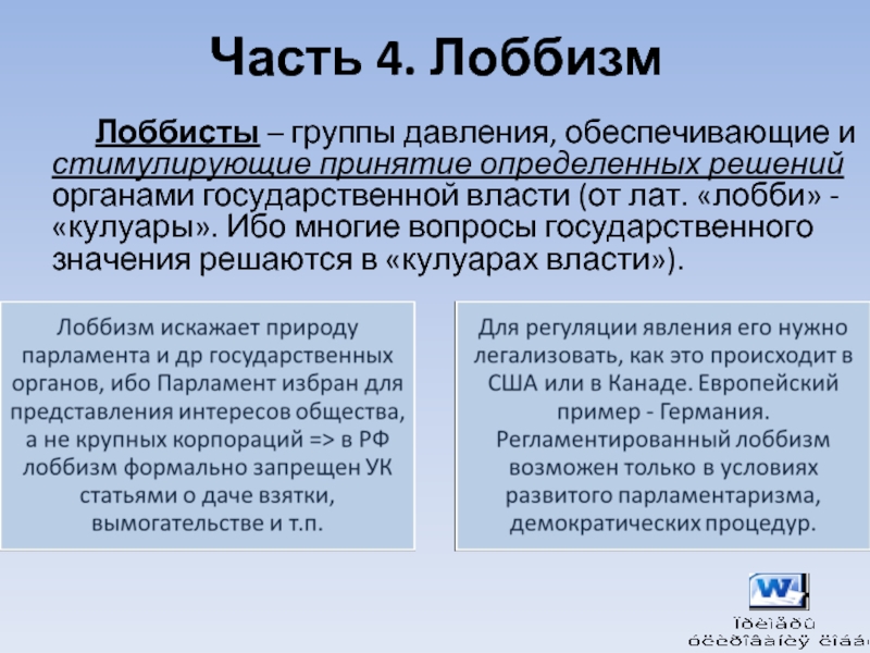 Слайд 17Часть 4. Лоббизм