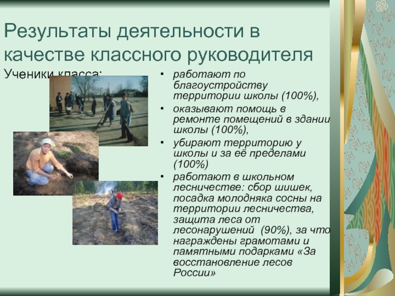 Слайд 9Результаты деятельности в качестве классного руководителя