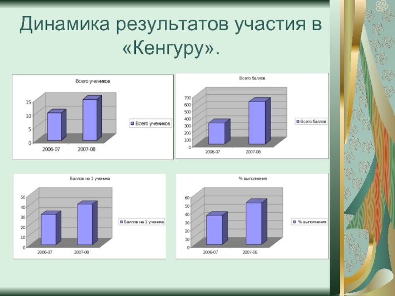 Слайд 28Динамика результатов участия в «Кенгуру».