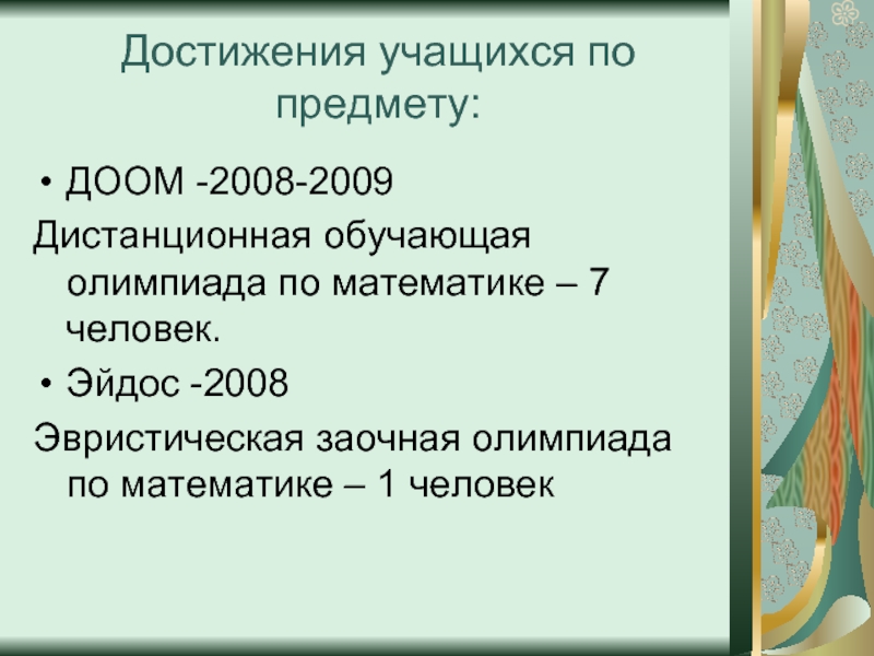 2006 - 07 уч.г. - один из членов ШМО - лауреат ПНПО;