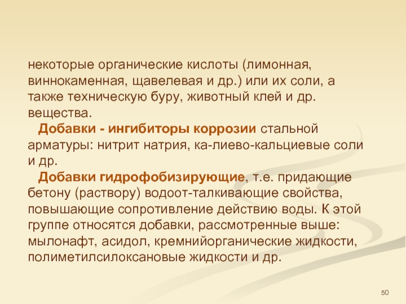 Слайд 51 Бактерицидные и инсектицидные добавки, повышающие сопротивляемость бетонов (растворов) против