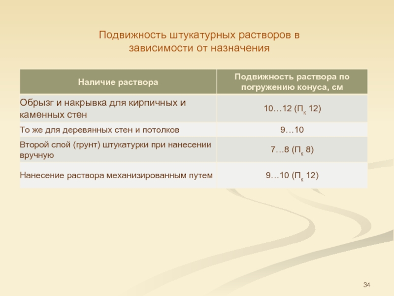 растворы для первого и второго фунта, применяемые в помещениях с нормальным температурно-влажностным режимом и для наружных и внутренних поверхностей, подверженных воздействию влаги. Подвижность раствора должна составлять при механическом нанесении 60:..80 мм. При ручном - 70...80 мм.