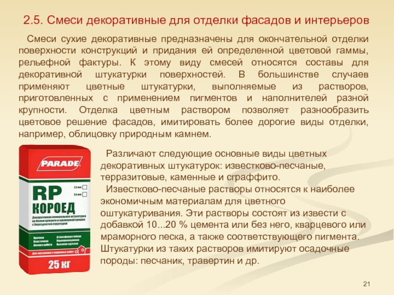 Слайд 16 Цементные растворы применяют при отделке наружных стен и помещений