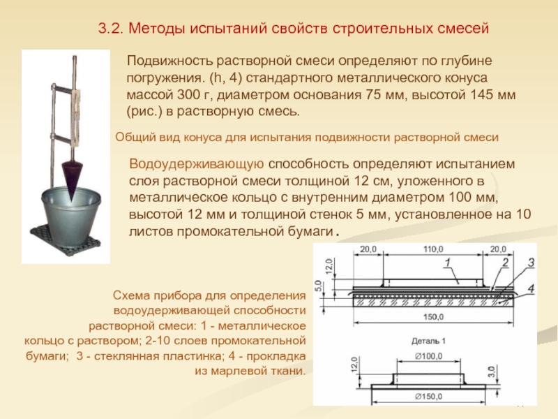 растворы для накрывочного слоя. Подвижность растворов, содержащих гипсовое вяжущее, должна составлять 90... 120 мм,