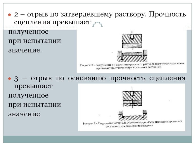 2 – отрыв по затвердевшему раствору. Прочность сцепления превышает