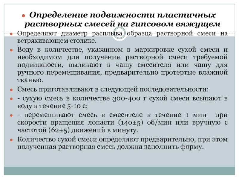 Сущность метода определения подвижности смеси, готовой для применения заключается в определении