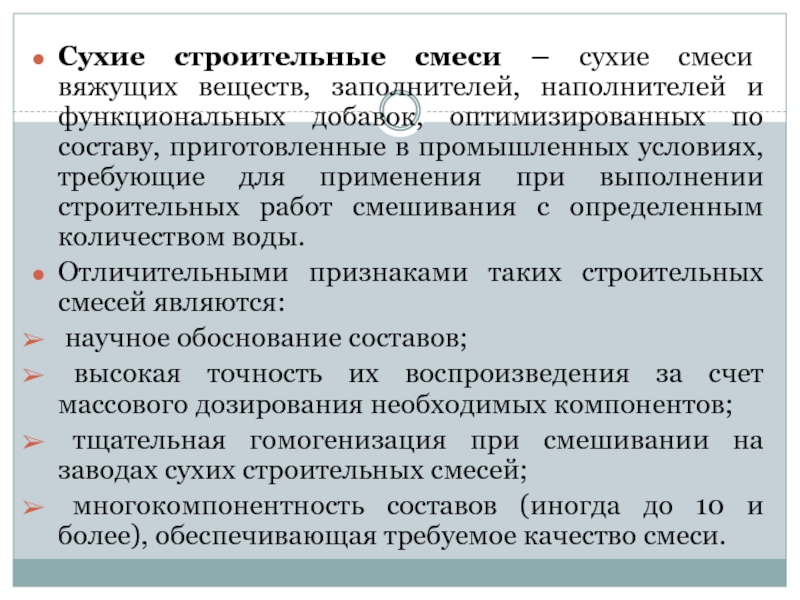 Сухие строительные смеси – сухие смеси вяжущих веществ, заполнителей, наполнителей и
