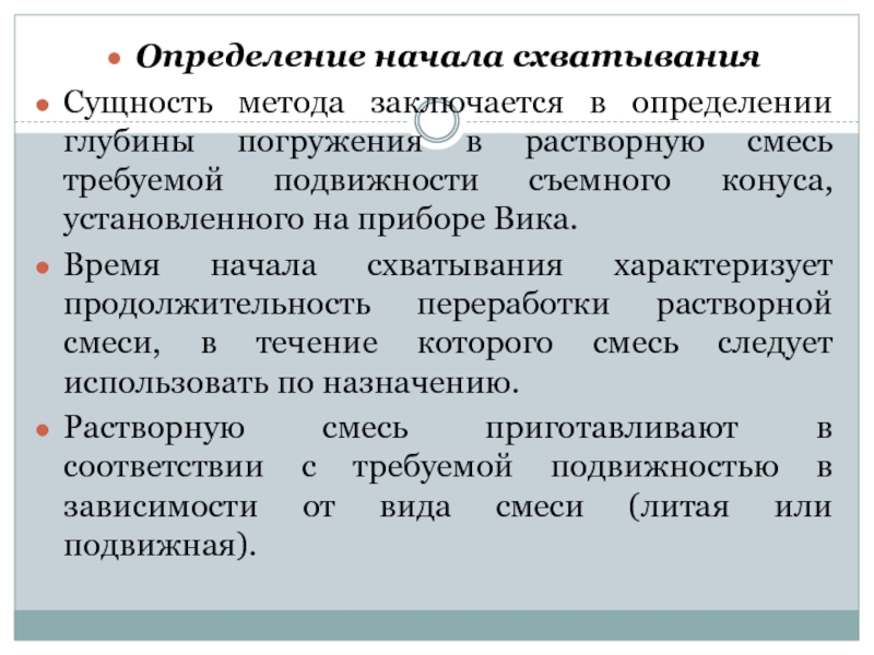 Время начала схватывания характеризует продолжительность переработки растворной смеси, в течение которого смесь следует использовать по назначению.