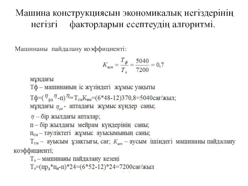 Слайд 11Машина конструкциясын экономикалық негіздерінің негізгі факторларын есептеудің алгоритмі.