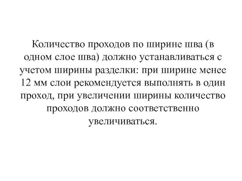 Слайд 52Количество проходов по ширине шва (в одном слое шва) должно устанавливаться