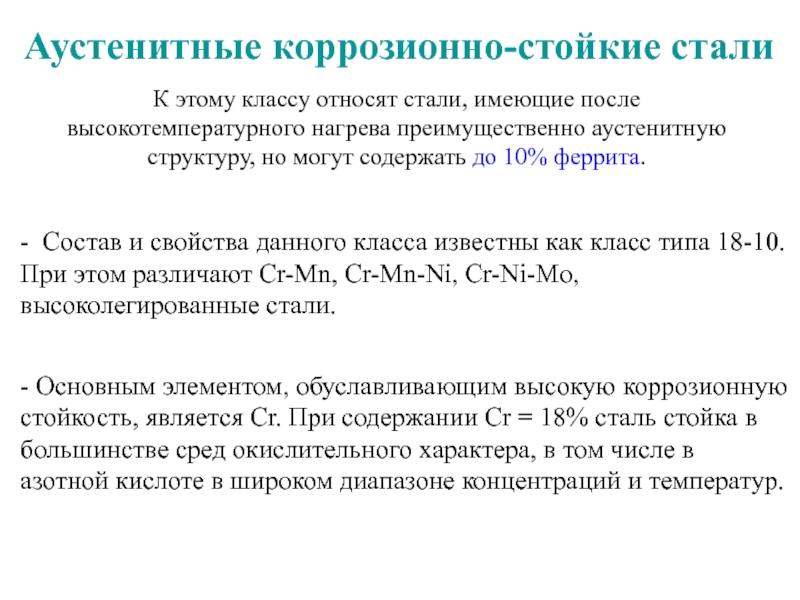 Слайд 9Аустенитные коррозионно-стойкие стали