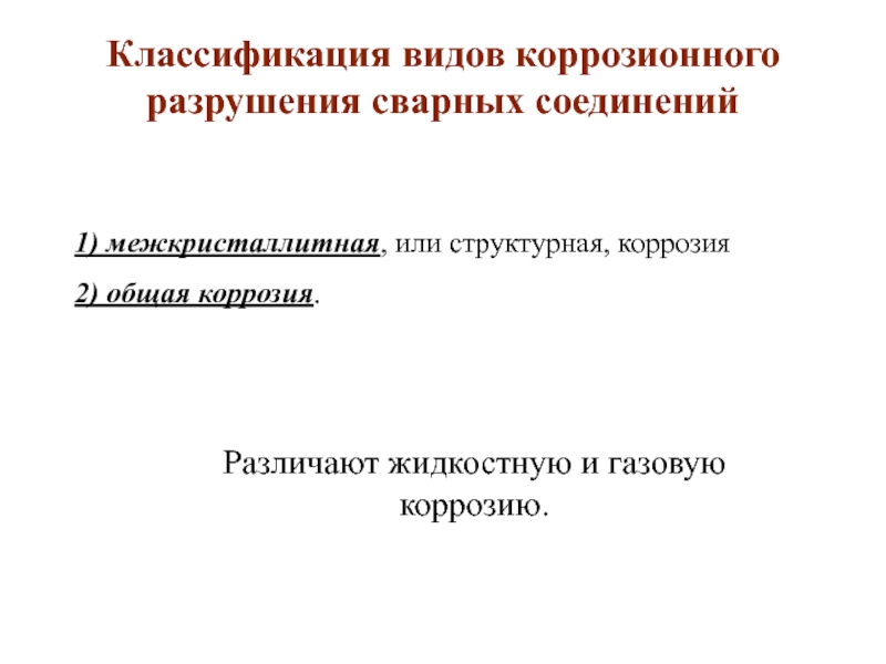 Слайд 25Классификация видов коррозионного разрушения сварных соединений