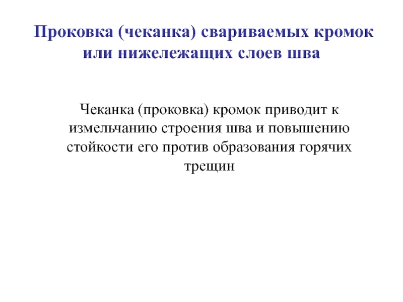 Слайд 23Проковка (чеканка) свариваемых кромок или нижележащих слоев шва