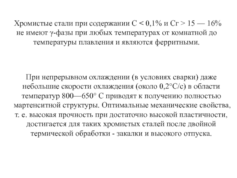 Слайд 60 Хромистые стали при содержании С < 0,1% и Сг >